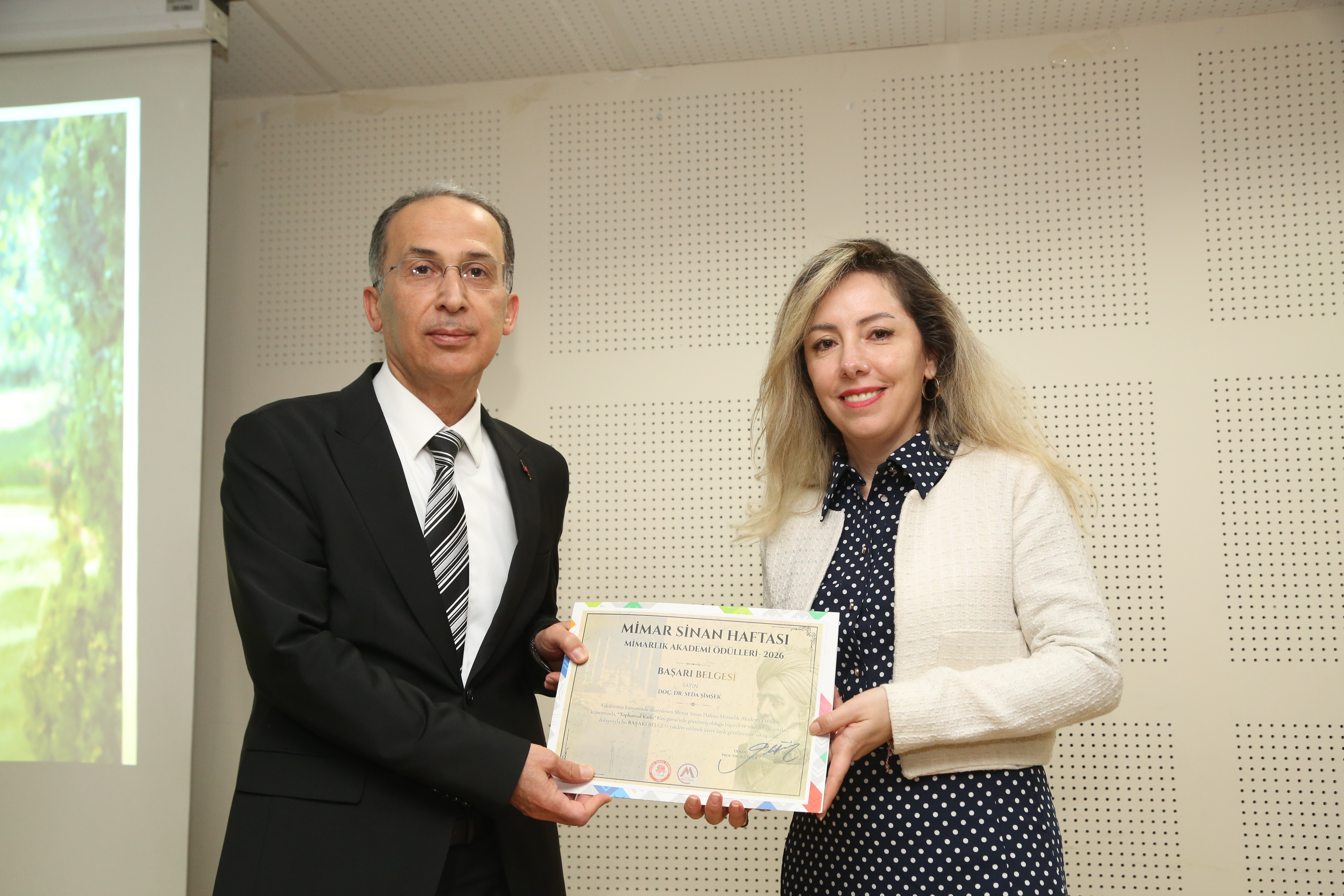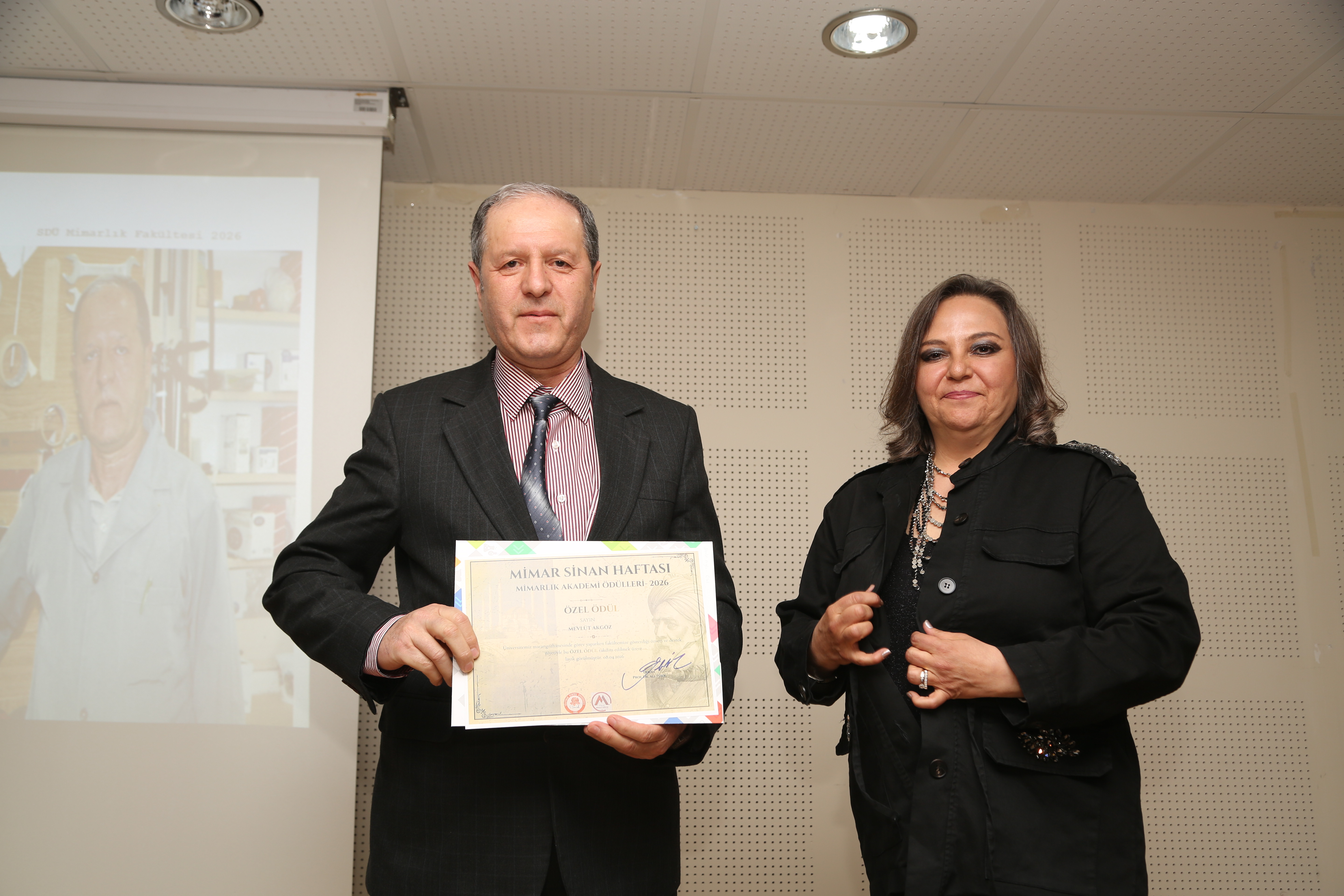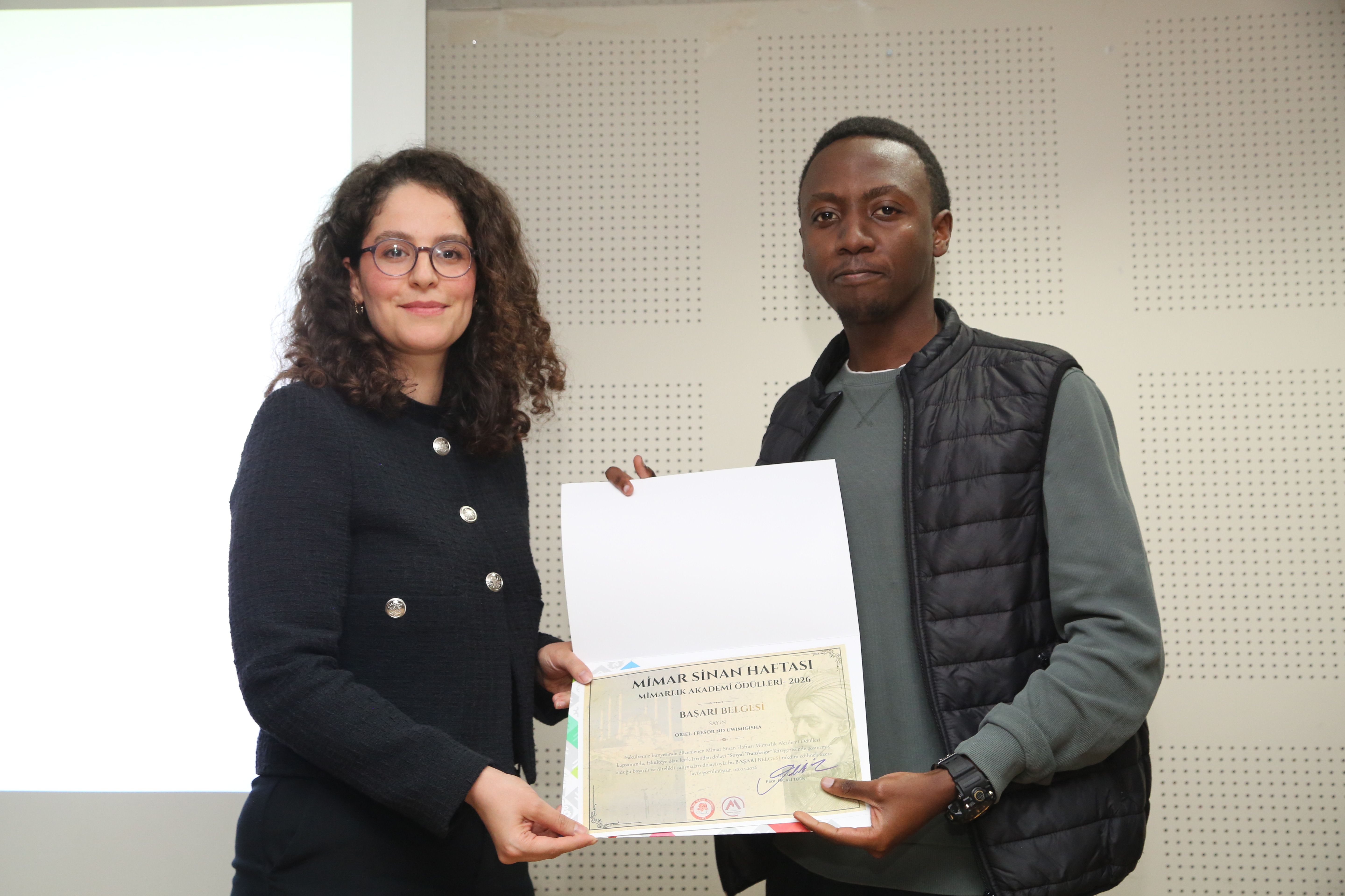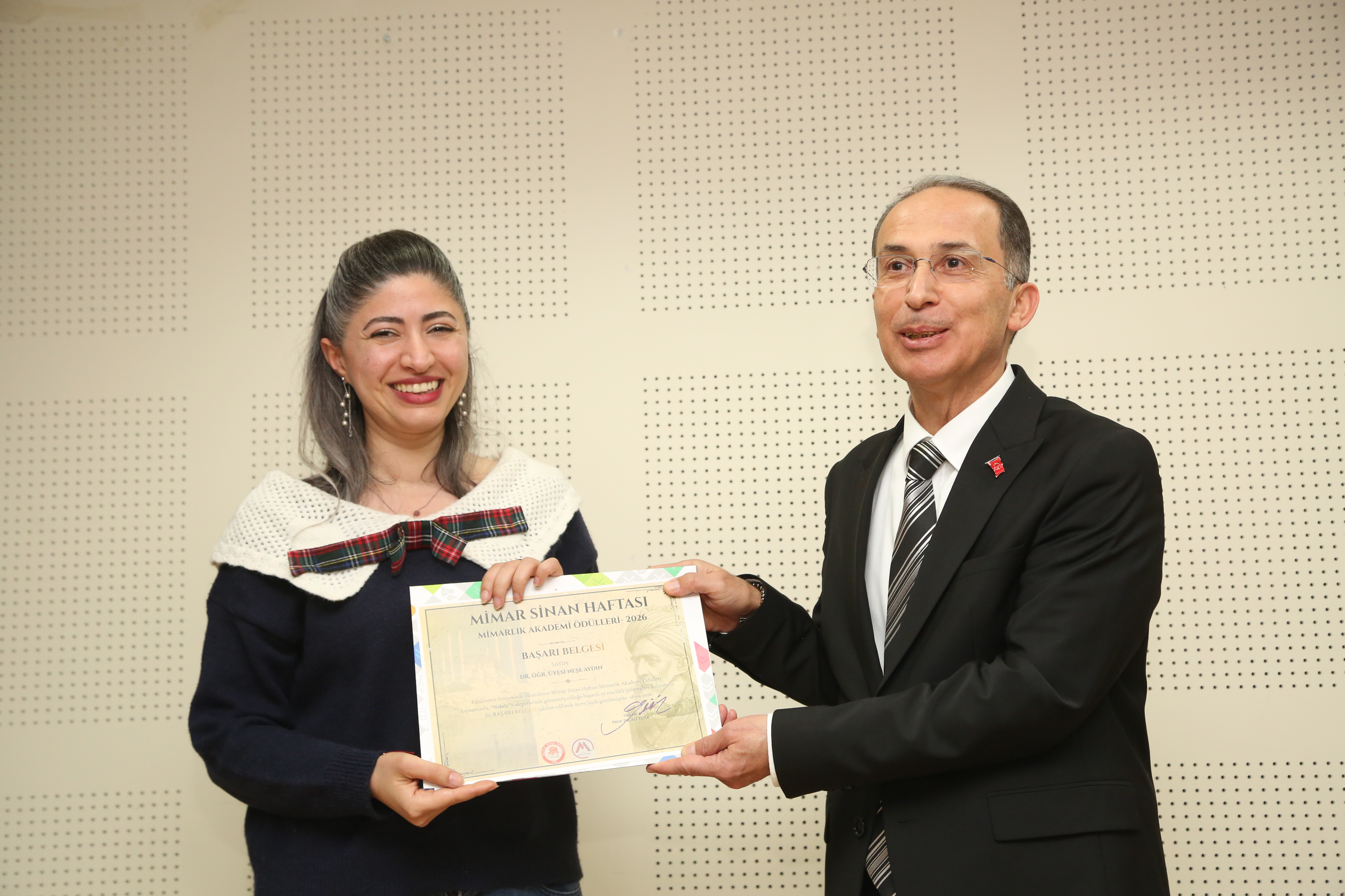 Program kapsamında, 08 Nisan 2026 tarihinde, Sayın Rektörümüz Prof. Dr. Mehmet Saltan ve Rektör Yardımcımız Sayın Sabriye Ercan’ın teşrifleriyle gerçekleştirilen Mimarlık Akademi Ödül Töreni, etkinliklerin en anlamlı anlarından biri olmuştur. Düzenlenen törende akademik, idari personel ve öğrencilerimize yıl boyunca göstermiş oldukları başarı, özveri ve katkılar dolayısıyla ödülleri takdim edilmiştir.