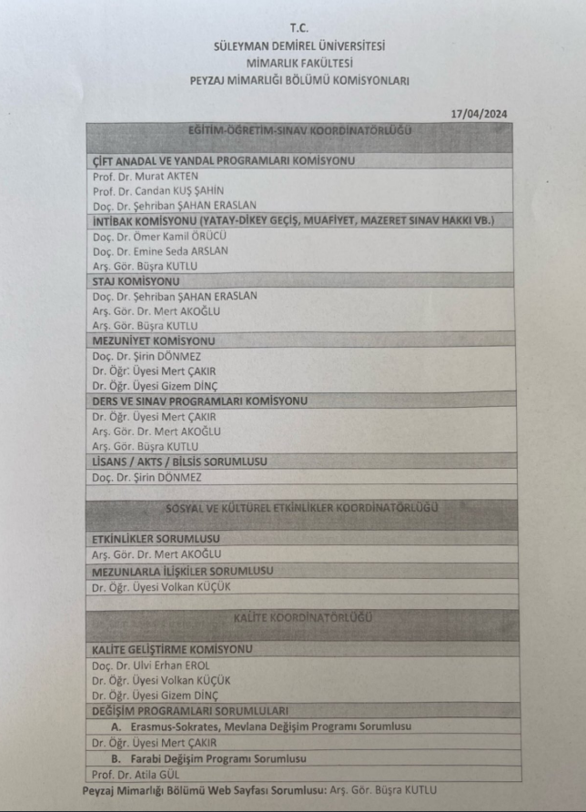 Peyzaj Mimarlığı Bölümü Komisyonları